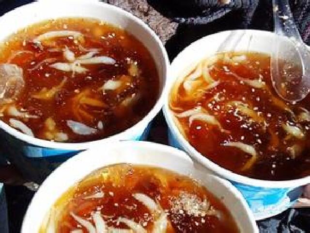 制作方法:冰粉用野果制成像果冻一般呈透明啫喱状,凉宵用米粉点上石膏,通过漏勺凝固在清中,两种东西搁在杯碗中,加上红糖浆、玫瑰糖、木瓜水、芝麻即成。
