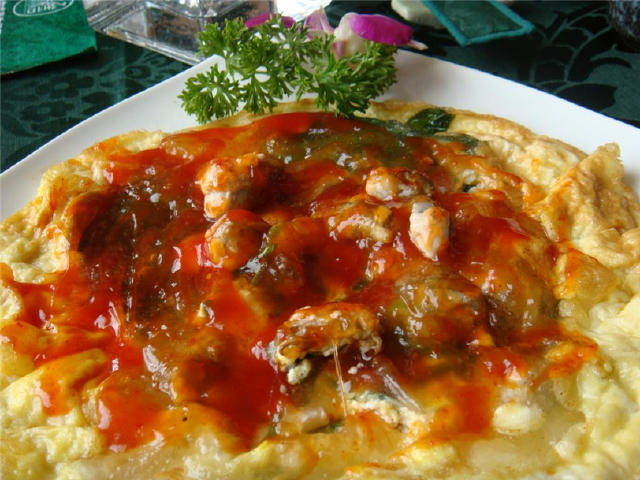 著名的台湾蚵仔煎,是一道文明全国的美食了。用刚打捞上来的新鲜海鲜蚵仔做成的台湾风味的地道美食。蚵仔就是一种较小的牡蛎,也叫作蚝。在滚烫的煎板上淋上经过特殊制作的秘制浓稠美味的番薯粉浆,然后把精挑细选后的新鲜蚵仔清洗处理干净撒在上面,再把切碎好的韭菜、豆芽、茼莴菜倒进去,再打上一个蛋,*后配上精心调配好的酱料,趁着新鲜出炉咬上一口,舌尖一会儿感受到甜味,忽然又变成了咸味,*是人间美食。